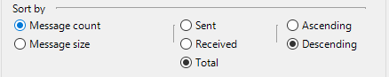 | Message size | Select this radio button to sort mailboxes by size of sent, received or total messages (smallest to biggest if Ascending, biggest to smallest if Descending). |